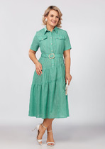 Легкое, воздушное платье из шифона на трикотажной подкладке для женщин подарит ощущение летнего бриза даже в самый знойный день. Этот элегантный наряд обязательно привлечет внимание окружающих! Нежный дизайн ткани добавляет шарм и делает его по-настоящему женственным. Крой А-силуэт нарядного изделия подходит как для повседневного образа, так и для особых случаев. Силуэт модели выделяет женственность фигуры и делает образ стильным. Платье создано для тех, кто предпочитает удобство и стиль в одном флаконе. Миди-длина платья и воланы подчеркнут грацию фигуры и добавят загадочность Вашему образу. Перед платья частично на застежке на петли и пуговицы. Рукав втачной, 3/4, по низу на резинке. Выбрав эту модель, Вы точно будете выглядеть неповторимо на любых мероприятиях!