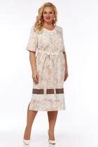 Повседневное летнее платье, свободного силуэта, длиной maxi, выполнено из шифона. Платье отрезное по линии талии. Верх платья с удлиненной линией плеча и небольшой цельнокроеной кокеткой переда и спинки по плечевому шву. Перед целый, спинка со средним швом. Пройма свободная заниженная, с притачными мягкими манжетами по низу. Круглый вырез горловины переда и спинки обработан обтачками. Юбка из 3х ярусов со сборкой по швам притачивания. По линии талии настрочная кулиска с завязками по бокам, которые позволяют регулировать свободу прилегания по фигуре. Платье без застежки, с подкладом по юбке. Длина изделия по спинке в 50 р-ре – 137 см. в 64 р-ре – 143 см.