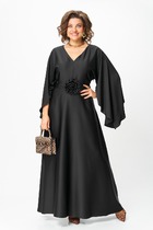 Практичное платье полуприлегающего силуэта с небольшим расклишением к низу, выполнено из трикотажного полотна. Перед платья со средним швом и двумя вертикальными вытачками. Выше линии талии небольшой подрез с мягкой сборкой по шву стачивания подреза. Спинка со средним швом. В среднем шве спинки застежка на потайной замок молнию длиной 15 см. Круглый вырез горловины переда и горловина спинки обработаны обтачаками. Рукав втачной, короткий. Длина рукава от плеча в 48 р-ре – 17 см. в 64 р-ре – 22 см., ширина рукава по низу в 48 р-ре – 40 см. в 64 р-ре – 52 см. Платье отлично подойдет как для повседневной носки, так и для торжественных мероприятий. Платье без подклада. Длина изделия по спинке в 48 р-ре – 97 см. в 64 р-ре – 105 см.