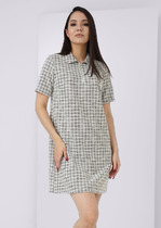 Универсальное платье прямого силуэта. Цельнокроеный короткий рукав. Горловина оформлена лодочкой. Тканевый пояс подчеркнет линию талии. Низ ровный, сбоку разрез.