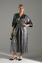Платье прямого силуэта, слегка заужено книзу из плательной ткани.