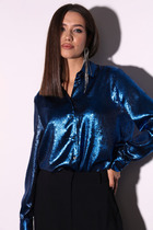 Объемные рукава из "бернаута"- один из самых главных трендов 2022 года. Это лидеры в своем сегменте. Эта модная деталь делает самую простую блузку идеально выразительной. Фасон свободный, рукав на резинке 3/4, ворот отложной, планка по переду на пуговицах. Длины: (44-50 -64см, рукав 47см)