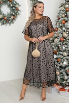 Летящее женственное платье станет идеальным дополнением к вашему образу на Новый год. Эта модель универсальна и подходит для любого праздника, придавая вам женственность, элегантность и праздничное настроение. Платье свободного кроя с длинными рукавами и манжетами по низу. V-образный вырез с эффектом запаха подчеркивает зону декольте. Изделие на подкладке, в комплекте идет атласный пояс.