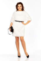 Платье женское относится к нарядной торжественной одежде. Платье женское полу прилегающего силуэта, длиной за колено. Перед с 2-мя нагрудными вытачками. Спинка с 2-мя талиевыми вытачками и средним швом, заканчивающимся шлицей. Горловина круглая, обточная, без воротника. Платье со спущенным плечом. Рукав втачной, одно шовный, длиной 7/8 из отделочной ткани; низ рукава собран на эластичную тесьму; окат рукава с 4-мя односторонними складками и 1-оё встречной по центру. Платье на подкладке. Платье без плечевых накладок. Длина спинки 107 см, длина рукава 43 см, длина рукава от горловины 60 см.