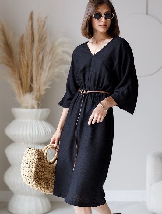 Платье с цельнокроеным рукавом изо льна с вискозой