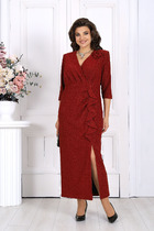 Красивое платье приталенного силуэта. Цельнокроенный рукав оканчивается манжетами на отворотах с патой. Круглый вырез горловины. Модель отрезная по линии талии, присборена на эластичную резинку. В боковых швах имеются функциональные карманы. По передней части юбки выполнена декоративная планка на пуговицах. Низ ровный, без разрезов.