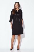 Платье женское полуприлегающего силуэта расширенное  к низу. Платье отрезное чуть выше линии талии. Верхняя часть переда и спинки с рельефами от проймы.  Спинка со средним швом, потайной застежкой молнией. По низу платья бахрома. Изделие на подкладке.