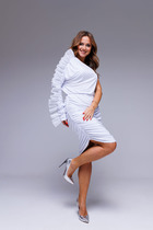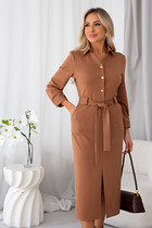 Платье женское из вельвета полуприлегающего силуэта с втачным рукавом. Перед платья с горизонтальным швом по талии. Верхняя часть с вытачками по линии груди, нижняя часть со складками в области талии и карманами что обеспечивает прекрасную посадку и подчеркивает фигуру. Разрез по переду платья добавляет нотку игривости и удобства. В комплекте съемный ремень.
