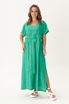 — Платье Swallow 482 зеленый+бежевый горошек