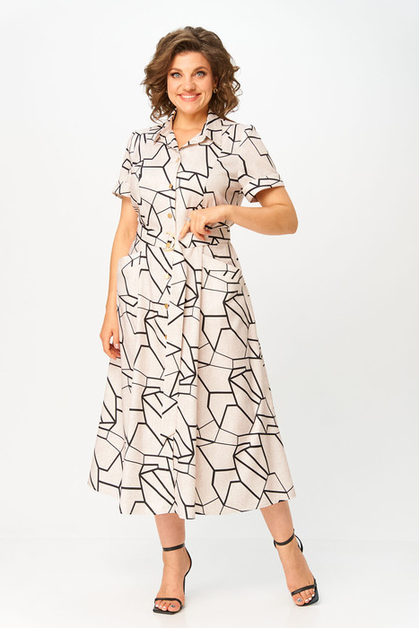 Платье Swallow 844.2 льняной, принт «чёрная геометрия»