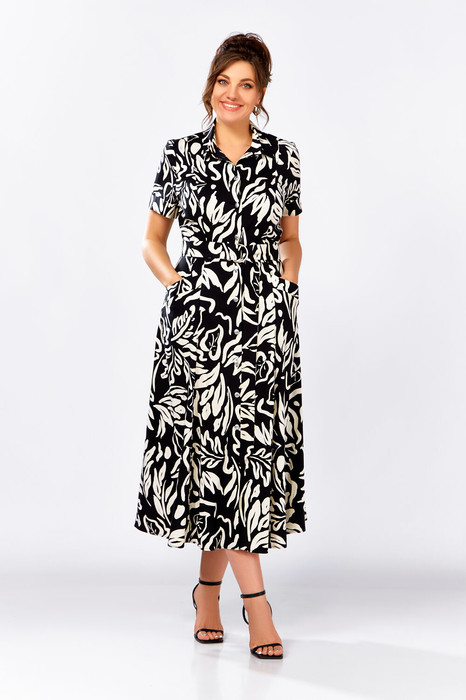 Платье Swallow 844.4 Черный в молочный принт