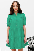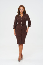 Платье женское полуприлегающего силуэта, расклешенное к низу. По переду наклонные вытачки и рельефы. По спинке талевые вытачки, подрез чуть ниже линии талии и кокетка овальной формы с разрезом и отделочной нашивкой по горловине. Горловина круглой формы. Рукав втачной, длинной 3/4 со сборкой сверху. Низ рукава присобран на манжету. Рукава и кокетка спинки выполнены из отделочной ткани(прозрачная органза с рисунком)