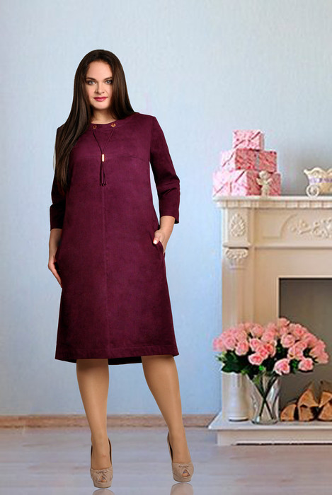 Cтильное замшевое платье. На переде обработаны два внутренних кармана с листочками. Спинка немного удлинена по отношению к переду. Стильным акцентом служит замшевое украшение-кисточка. Материал тянется хорошо. Длина от центра горловины спинки до низа для размеров 48,50 - 101 см, для 52,54,56 -103 см, для 58,60,62,64,66,68 - 109 см, длина рукава 47,5 см.