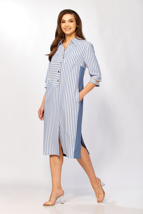 Платье Тэнси 411 джинсовый+ белый