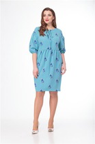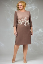 Платье прямого силуэта со спущенной линией плеча. Центральная застежка на тесьму-молнию,которая закрыта декоративной планкой. Рукав длинный с манжетой по низу.По переду платья расположены накладные карманы с клапанами. В боковых швах карманы,по низу платья разрезы. Спинка со средним швом и кокеткой, в которой вставлен волан.