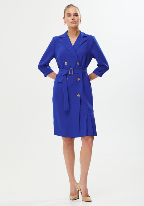 Элегантное двубортное платье который сезон будоражит умы дизайнеров. Яркое и женственное платье идеально подходит как для офисных луков, так и для вечера в ресторане. Украшение платья служат складочки по нижней полочке платья.