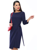 Платье женское, полуприлегающего силуэта, слегка зауженное к низу. Платье выполнено из велюра на трикотажной основе. По переду расположен фигурный подрез под грудью, а также рельефы, идущие из проймы через центр груди и переходящие в талиевые вытачки. На спинке расположены талиевые вытачки и средний шов, с застежкой на тесьму-молнию, по низу - разрез. Рукав короткий одношовный. Горловина — «лодочка», по переду переходящая в V-образный вырез «капелька».