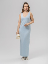 Элегантное платье полуприлегающего силуэта с асимметричной застежкой на петли и пуговицы. Перед платья с нагрудными вытачками и клапанами в области бёдер. Спинка с талиевыми вытачками и средним швом, внизу которого обработана шлица. Застежка асимметричная, двубортная, по низу платья расходится на разрез. В области плеч — погоны, закрепляющиеся на пуговицу. Рукава двухшовные втачные, длиной 3/4, с притачной манжетой. Платье с плечевыми накладками и со съёмным ремнем в цвет фурнитуры. Фурнитура и комплектующие (ремень) могут незначительно отличаться от представленных на фото.