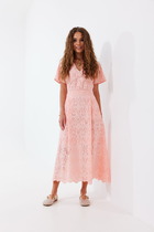 Платье приталенное, отрезное по линии талии. По лифу рельефы. Юбка спереди со встречными складками, карманами с декоративным клапаном. По горловине кокетка. Короткий рукав – реглан со складкой. Мягкий декоративный пояс фиксируется шлёвками. Сквозная застёжка с планками. Длина изделия 115 см.