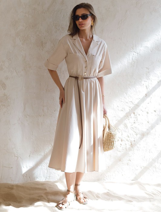 — Платье в стиле сафари с отложным воротником