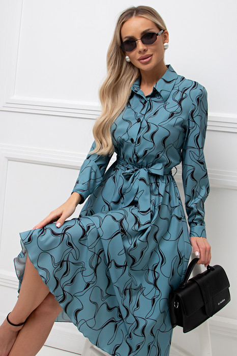 Красивое платье приталенного силуэта из легкой ткани - ниагара. Горловина оформлена отложным воротником на стойке. По переду выполнена планка с застежкой на петли и пуговицы. Длинный втачной рукав, оканчивается притачной манжетой. В боковых швах функциональные карманы. Модель отрезная по линии талии, присобрана на эластичную резинку. Тканевый пояс дополнительно акцентирует талию. Модель прекрасно дополнит ваш гардероб.