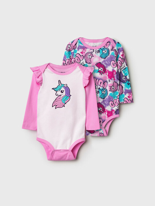 Набор боди для девочки. Боди с длинным рукавом из натурального хлопкового двойного трикотажа. 2 шт. в комплекте. 100% хлопок. Кнопки внизу – 2 ряда, боди растет вместе с малышом.