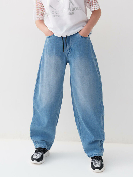Джинсы багги для девочки подростка. Свободный крой baggy, выполнены из вареного синего денима. Спереди удобные боковые карманы, сзади — накладные. Застежка на молнию и болт. На поясе предусмотрена регулировка за счёт внутренней резинки с пуговицей. Украшены декоративным лейблом на спинке.