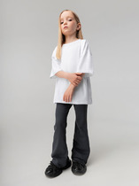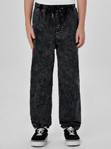 Это подростковые джинсы свободного покроя с прямыми и широкими штанинами для мальчика подростка. Выполнены из плотного хлопкового денима. Джинсы застёгиваются на молнию и болт, внутри пояса есть эластичная лента с пуговицей для регулировки. Боковые и задние карманы. На заднем кармане размещён декоративный шеврон с белым принтом.