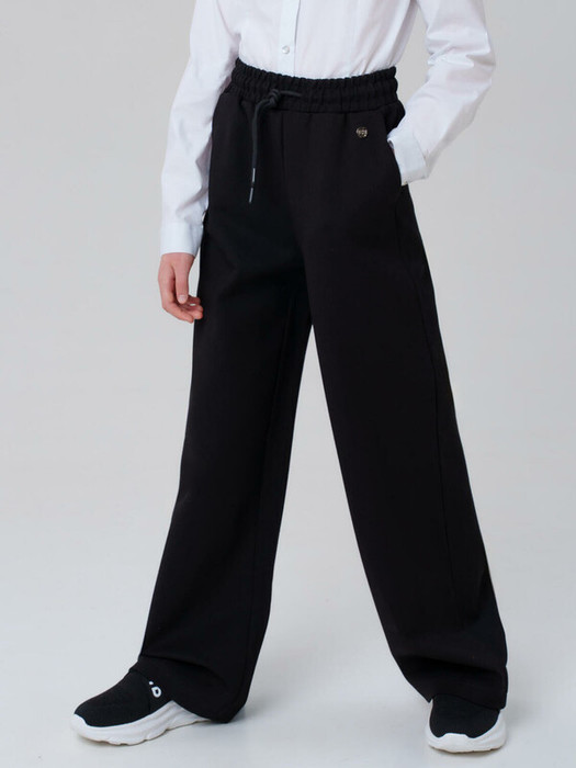 Идеальные брюки для школы, сочетающие комфорт и аккуратный внешний вид. Модель с посадкой Wide leg — это широкие брюки с расслабленной посадкой, максимальной длиной и акцентом на талии. Обеспечивает свободу движений, а резинка со шнурком позволяет легко регулировать посадку по фигуре.