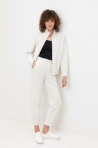 Спортивные женские брюки. Выполнены из хлопкового трикотажа футер без начеса. Модель свободного кроя со средней посадкой на талии. Пояс на резинке, дополнительно регулируется шнурком. По бокам — удобные карманы. В нижней части брючин предусмотрена резинка для лучшей посадки.