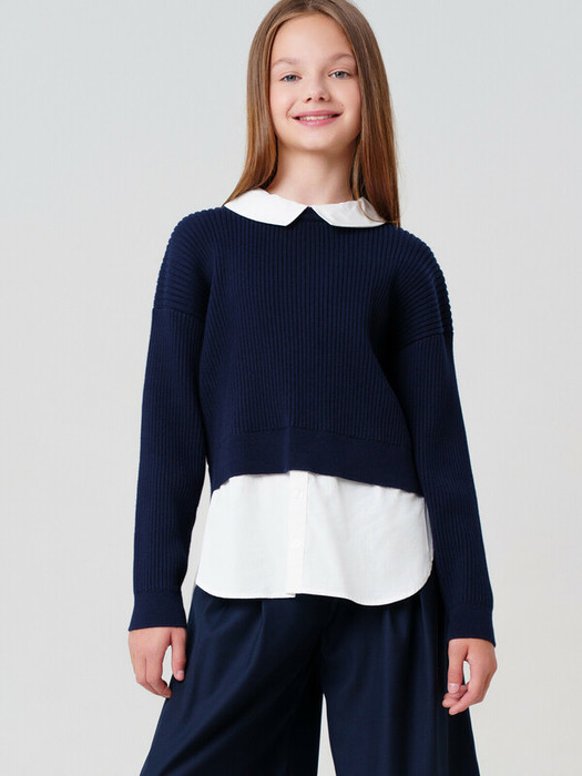 Этот синий подростковый джемпер для школы мягко садится по фигуре, не стесняет движений и создаёт актуальный образ с имитацией многослойности. Застёжка на спинке позволяет легко надевать и снимать такой универсальный детский джемпер для девочек, а свободный силуэт идеально подходит для подростков, ценящих стиль и свободу.