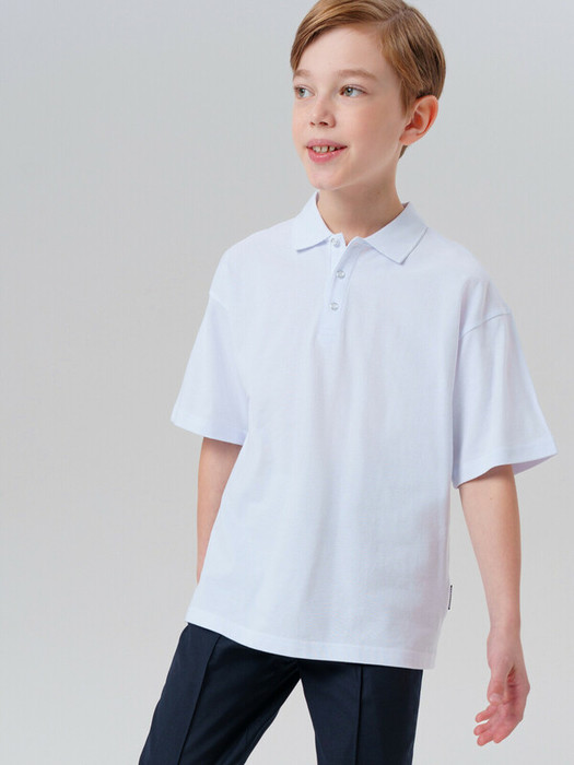 Классическое белое оверсайз поло с коротким рукавом для мальчика
