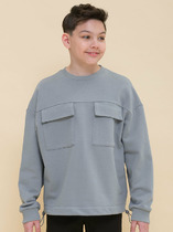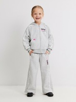 Кардиган для девочки подростка. Модель из мягкого и эластичного трикотажа с фактурной вертикальной полоской. Выполнен в черно-сером цвете с эффектом выварки. Кардиган имеет приталенный крой, длинные облегающие рукава с отверстиями для большого пальца и застежку на молнию спереди. На боковом шве расположена небольшая жаккардовая бирка.