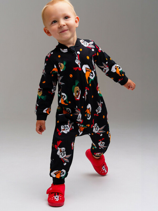 Пижама детская для мальчика из натурального хлопкового двойного трикотажа. Комбинезон из 100% хлопка. Эластичные манжеты.