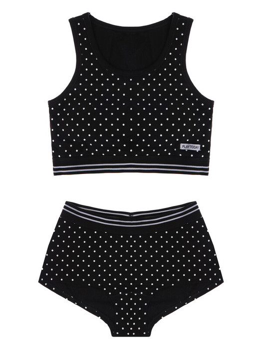 Комплект белья: трусы-шорты и топ со съемными чашками из мягкой трикотажной ткани с добавлением эластана для комфортной носки и свободы движений. По низу топа и поясу шорт фактурная резинка.