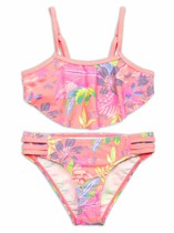 Слитный купальник для девочки подростка. Выполнен из эластичной ткани с ярким неоновым принтом в розовых и бирюзовых тонах на чёрном фоне. У купальника широкие плечевые бретели и закрытая спинка без застёжек. Внутри предусмотрена двойная подкладка и съёмные чашечки для комфорта. Все края обработаны эластичной тесьмой, чтобы изделие хорошо сидело на теле и не натирало. Благодаря UF-защите, ткань сохраняет первоначальный вид даже при длительном пребывании на солнце. Отличный выбор для пляжа или бассейна.