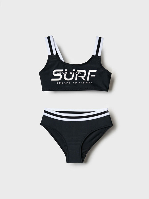 Купальник раздельный для девочки подростка. Благодаря UF-защите, ткань сохраняет первоначальный вид даже при длительном пребывании на солнце. На топе расположен яркий принт. Бретели широкие, двойные, бело-черные, перекликаются с декоративной тесьмой на поясе плавок. Внутри топа — мягкие чашки и подкладка, плавки также снабжены подкладкой и гигиенической вставкой. Все края обработаны мягкими эластичными лентами для комфорта. Яркий, стильный и удобный купальник, идеально подходит для активного отдыха и плавания.