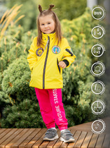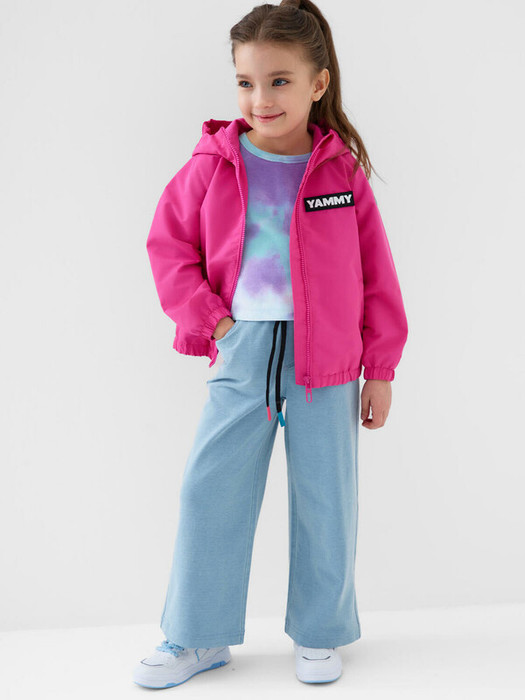 Детская ветровка для девочки. Температурный режим от +20С до +10С. Ткань с мембранным покрытием 5000х5000. Внутри трикотажная подкладка. Капюшон несъемный, на резинке. Удобные боковые карманы на липучке. Внутренний карман на липучке. Рукава и низ изделия собраны на эластичную резинку, чтобы защищать от ветра. На рукаве и на спинке светоотражающие нашивки — для безопасности в темное время суток.