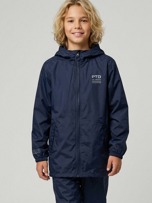 Непромокаемая и ветронепродуваемая легкая куртка-дождевик для мальчика-подростка из PTD RAIN COLLECTION. Куртка одевается на верхнюю одежду, поэтому  в куртке есть специальные  отверстия, чтобы была возможность залезть в карман верхней одежды. Куртка на молнии. Капюшон на утяжке.  Манжеты на резинке и кнопке, которую можно расстегнуть , чтобы рукава были более широкие.  Специальная грязеотталкивающая пропитка сохранит изделие чистым даже после активных игр на улице.  Внутри все швы дополнительно проклеены изолирующей тесьмой. Светоотражающие детали обеспечивают безопасность ребенка  в темное время суток.  Добавлена петелька под капюшоном с внешней стороны, чтобы остальные вещи на вешалке не намокали.  В комплекте идет непромокаемый мешочек. Куртка в свернутом виде и упакованная в мешочек занимает очень мало места. поэтому ее легко можно брать с собой  в рюкзак или сумку на случай дождя. Куртку можно сочитать с непроницаемыми брюками из такого же материала
