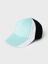 Cтильная двухсторонняя детская панама для мальчика. Одна сторона выполнена в однотонном мятном цвете с контрастным логотипом, другая — с ярким чёрно-мятным принтом.