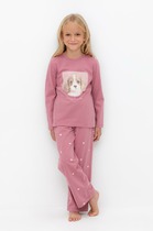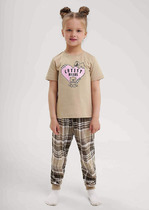 Пижама детская для девочки. Футболка оверсайз и шорты из эластичного и приятного на ощупь трикотажа. Шорты на резинке со шнурком. Высокое содержание хлопка 95%. Благодаря наличию эластана в составе ткани изделие держит форму и меньше мнется.