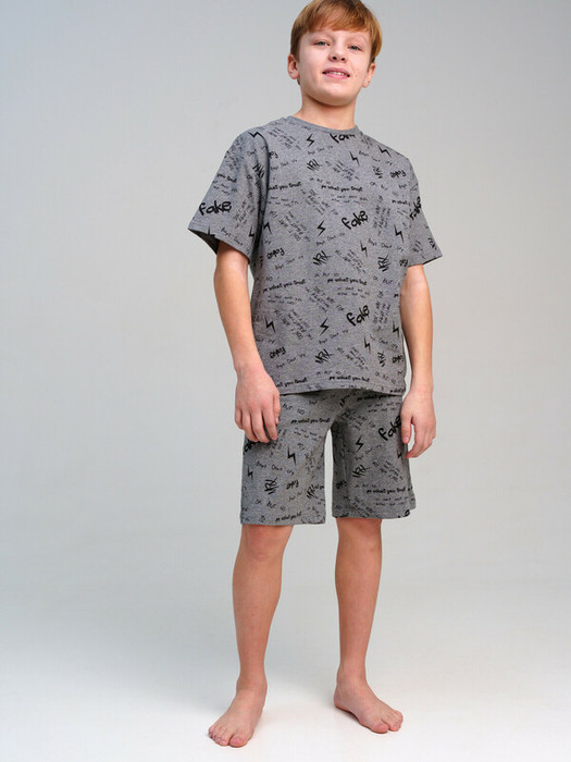 Пижама для мальчика подростка. Футболка и шорты из эластичного и приятного на ощупь трикотажа. Шорты на резинке со шнурком.  Высокое содержание хлопка 95%. Благодаря наличию эластана в составе ткани изделие держит форму и меньше мнется.