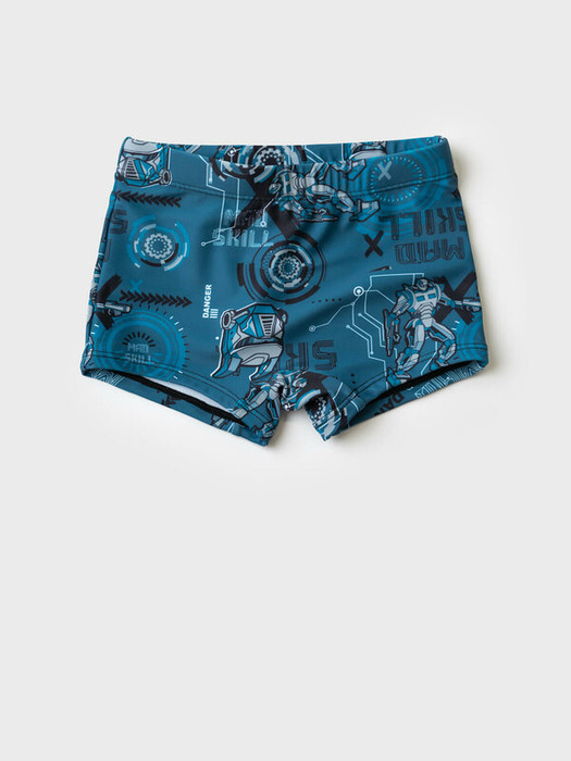 Плавки-шорты детские короткие, прилегающего силуэта для мальчика. Изготовлены из эластичного трикотажа, с подкладкой для большего комфорта. Ткань устойчива к солнцу и солёной воде, благодаря UF-защите сохраняет насыщенность цвета и структуру волокон. В поясе — удобная резинка и регулируемый шнурок.