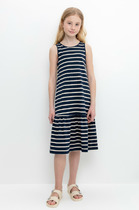 Сарафан с персонажем Disney из качественного и приятного на ощупь трикотажа джерси. Высокое содержание хлопка 95%. Благодаря наличию эластана в составе ткани, изделие проще в уходе и держит форму. Пояс со шнурком. Реверсивные пайетки. Карманы.
