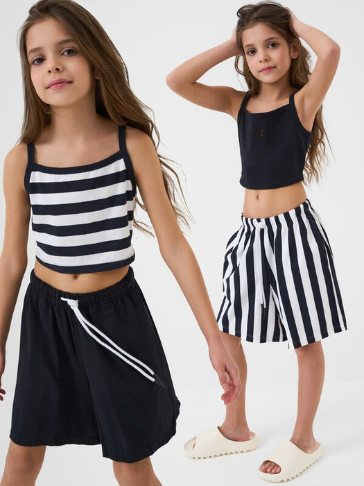 Набор шорт для девочки подростка. В комплект входят две пары шорт свободного кроя. Модели из мягкого, хлопкового трикотажа джерси. Удобная посадка обеспечивается эластичным поясом со шнуром. По бокам расположены два кармана.