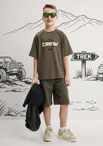 Шорты детские для мальчика. Модель свободного кроя из мягкого, хлопкового трикотажа футер. Удобная посадка обеспечивается эластичным поясом со шнуром. Спереди — декоративные нашивки, боковые карманы и накладные карманы-карго.