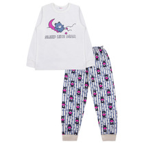 Детская ночная сорочка для девочки. Модель свободного кроя с короткими рукавами и широкой волнистой оборкой по низу. Изделие украшено ярким и забавным принтом с мультяшными десертами — пирожными, чашками, конфетами и другими сладостями. На рукавах — аккуратные оборки, добавляющие воздушности.