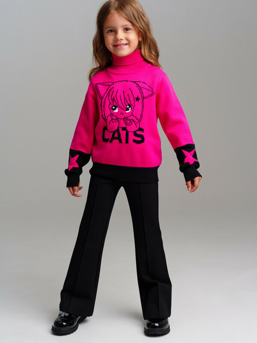 Свитер детский для девочки. Свитер из вязаного трикотажа с добавленим вискозы. Модный свитер жаккардовой вязки с высоким содержанием вискозы. Вискоза хорошо поглощает влагу, отлично пропускают воздух. Изделия приятны к телу, и не вызывают раздражения.  Модель из капсульной коллекции CATS DREAM. Соберите полный образ в едином стиле!