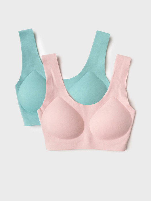 Набор два топа-бра без застежек для девочки подростка. Бесшовная технология. Изделие выполнено из эластичного трикотажа и имеет мягкие формованные чашечки для дополнительного комфорта. Внутри по низу предусмотрена эластичная тесьма для лучшего прилегания к телу.