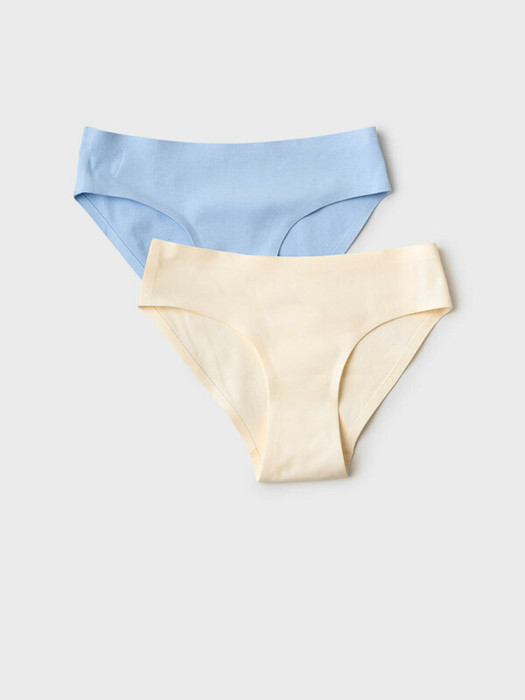 Набор из двух бесшовных трусов-брифов для девочки подростка. Одни трусы выполнены в бежевом цвете, другие — в светло-фиолетовом. Модель имеет аккуратный крой, без резинок и выступающих швов. Ластовица приклеена изнутри и зафиксирована мягкими плоскими швами. Материал - хлопковой трикотаж.